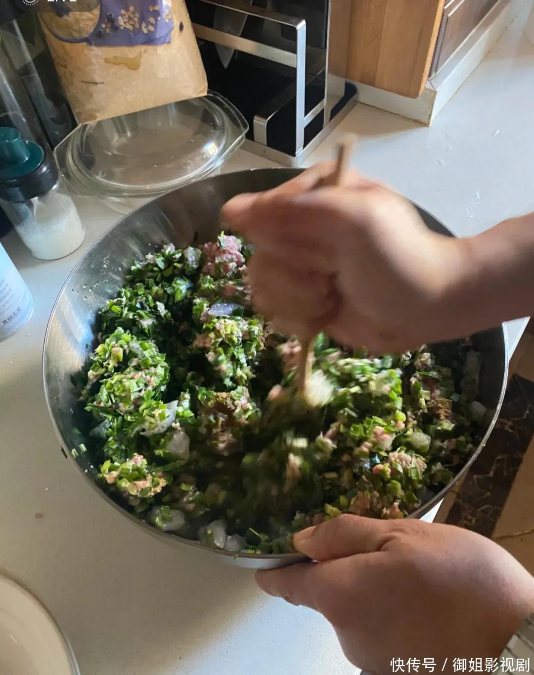 还别说,身材高大的刘均系上围裙,拌起饺子馅,手法不但娴熟老练,尤其笑起来露出脸上两个酒窝,看起来非常有亲和力。