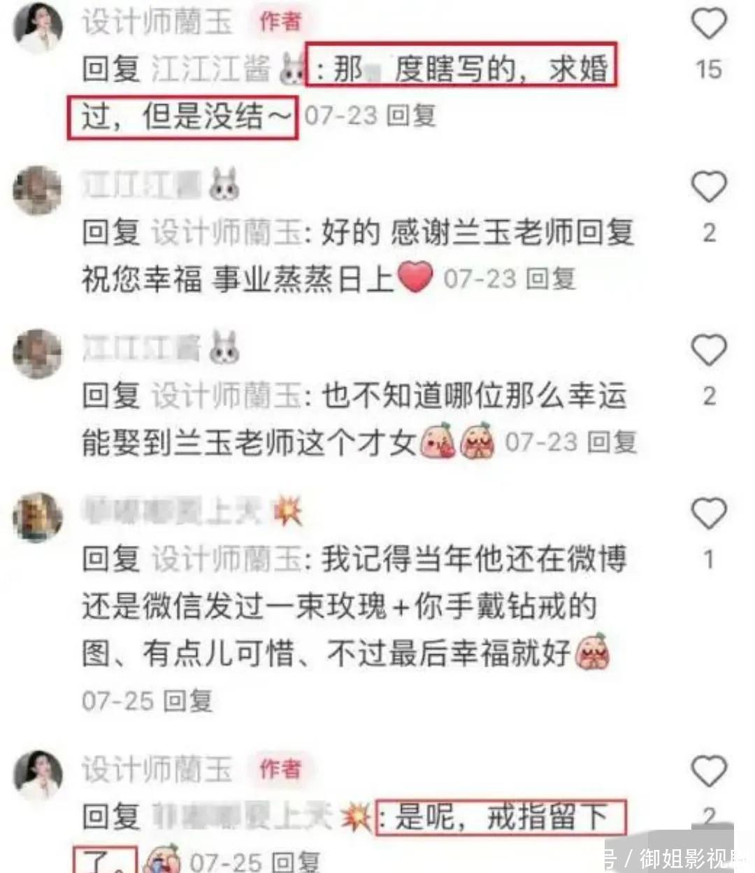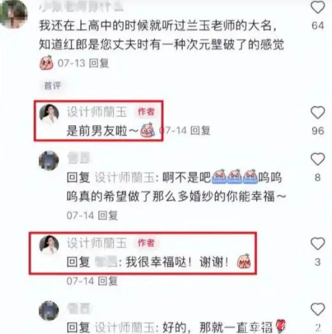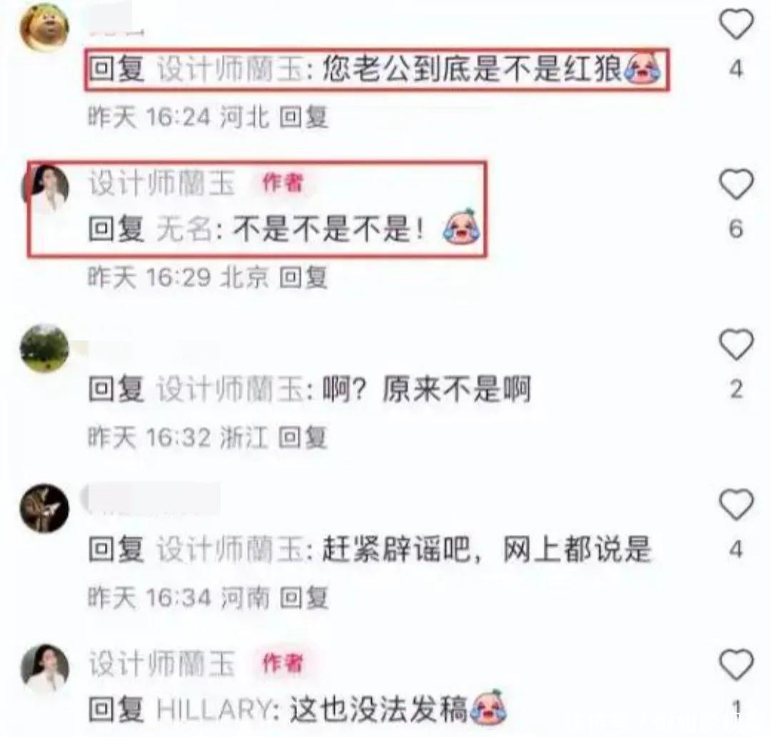 其实,早在前段时间,著名服装设计师兰玉官宣三胎时,就有网友在评论区祝贺刘均。